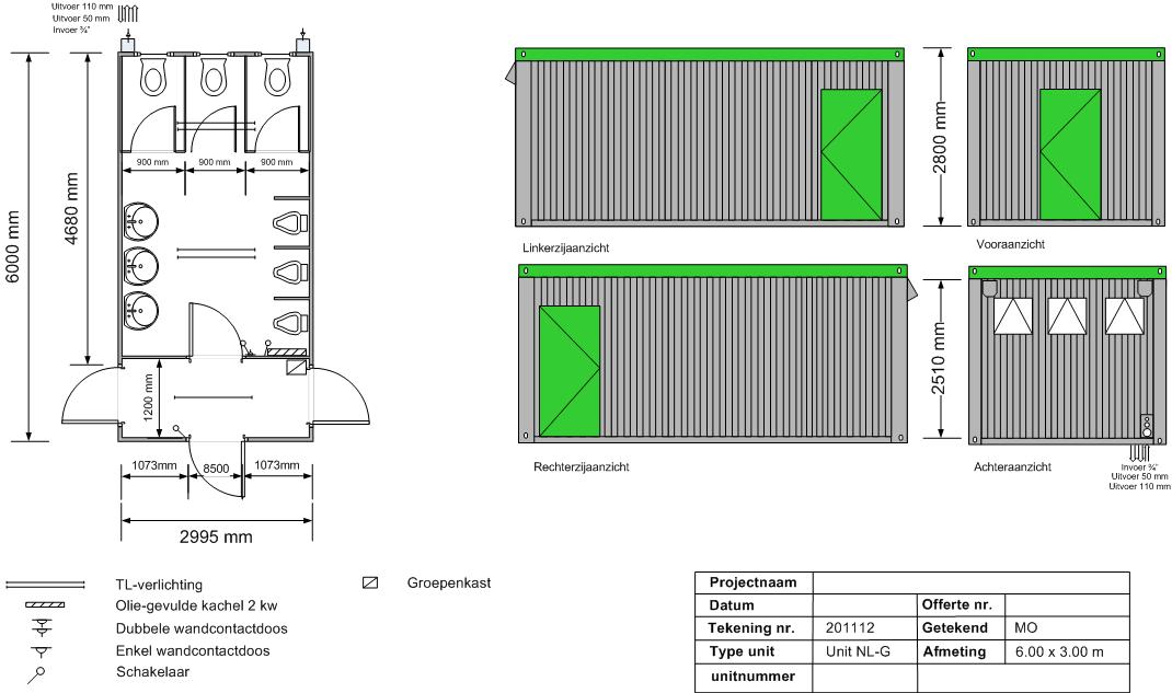 - Kan worden voorzien van: toiletten, wasbakken